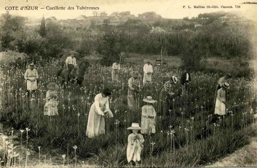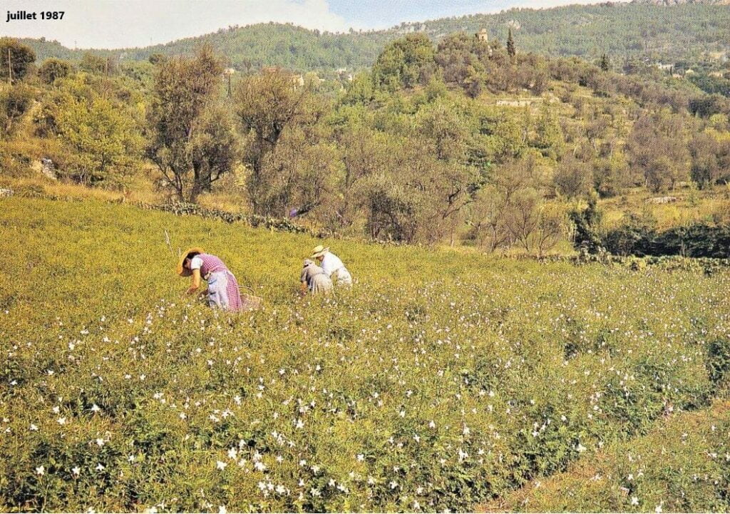Comme si à Grasse, le temps s’était arrêté depuis des siècles. C’est à flanc de collines, au pieds des murs de pierres sèches, dans une terre lourde, argileuse et généreuse, là où aucune machine ne peut aller que les paysans, producteurs de plantes à parfum, s’évertuent sans cesse, avec délicatesse, générosité et assiduité à reproduire des gestes qui ne changent pas et qui ne pourront jamais changer.